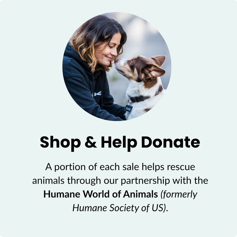 A portion of each sale goes to supporting rescues through our partnership with Humane World of Animals (formerly Humane Society of US).